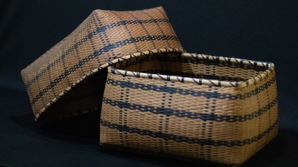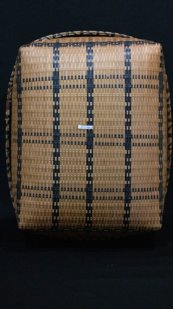ACESSÓRIO RITUAL | ARQUEADO | CESTARIA | CESTO ESTOJIFORME | SARJADO | TRABALHO EM TRAMA | TRANÇADO SARJADO | TRANÇADO SARJADO BICROMO