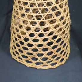 Paneiro de tamanho pequeno trançado hexagonal, usado para carregar mandioca, armazenar lixo recebe uma alça para suspender sendo seu uso pela cabeça a alça fica suspensa na testa.