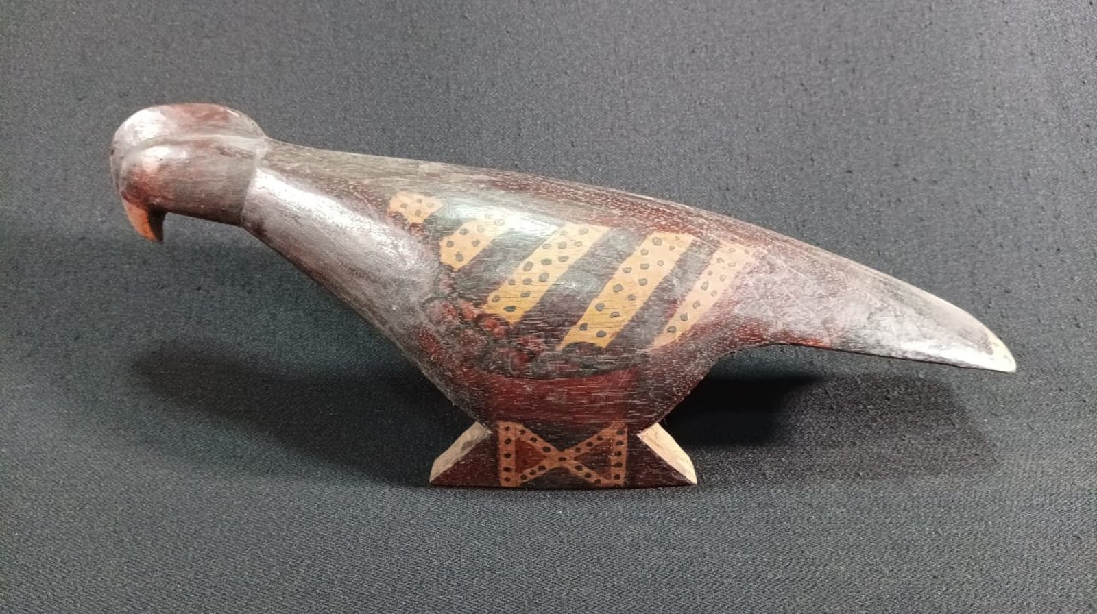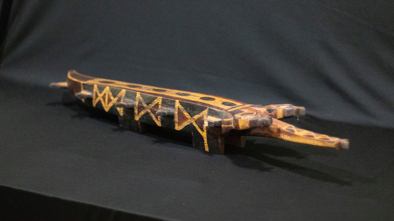 Escultura de madeira representando Kayeb (uma das constelações mais importantes do povo Palikur), confeccionada em madeira caju constituída de cauda, corpo alongado provido de duas cabeças, separadas por uma cauda. Apresenta em cada lateral cinco esculturas de estrelas e superfície decorada com marcas de Kuahí, makoko e estrelas pintados com com tinta de urucum e cumatê .