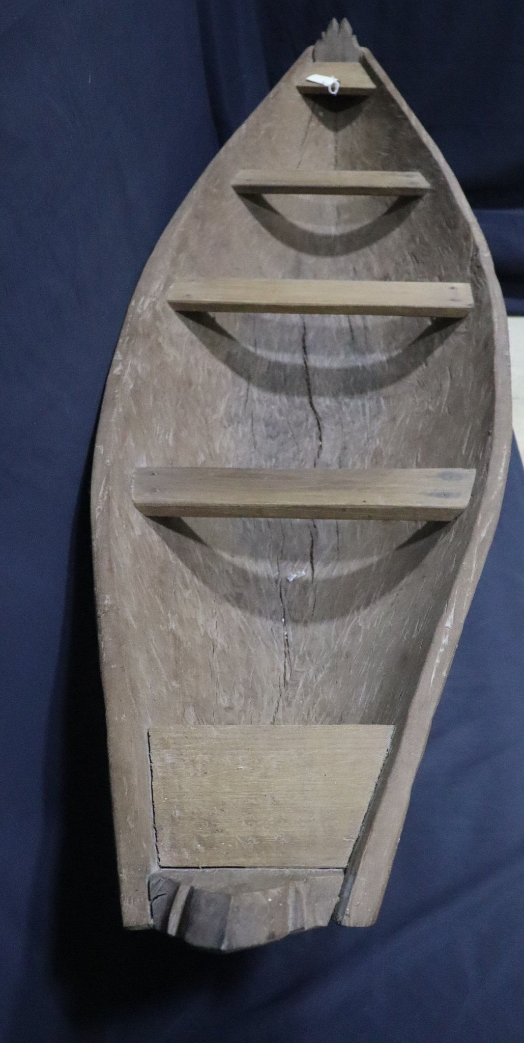 Igara talhada em casca de árvore de cupiúba, de conformação elíptica e fundo chato. Possui calefetação interna com tala de buriti e resina do breu e cinco bancos provavelmente de madeira louro.