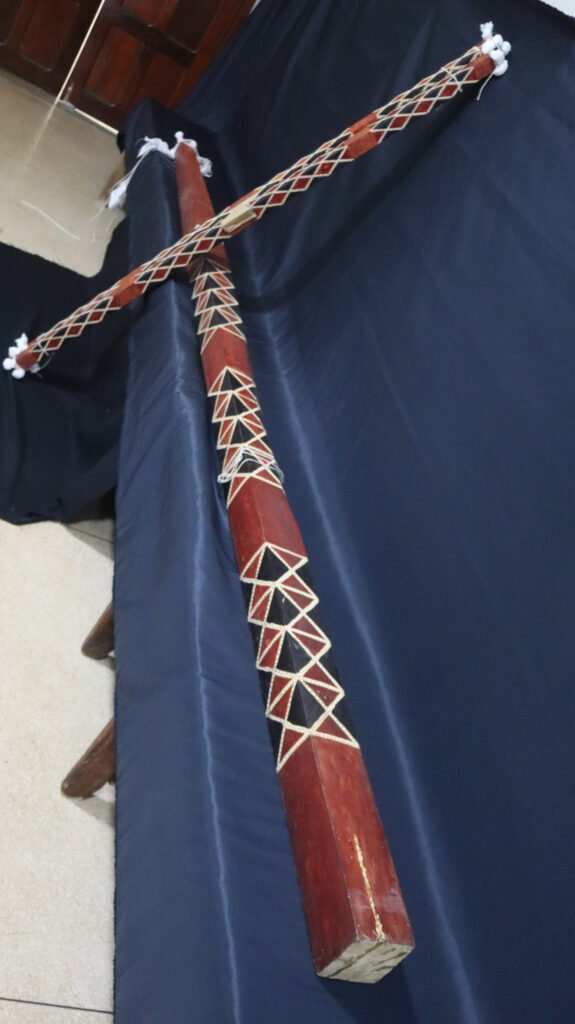 Utilizado no ritual do Turé, representa os espíritos. Fica no centro da roda ou em uma das saídas da roda.